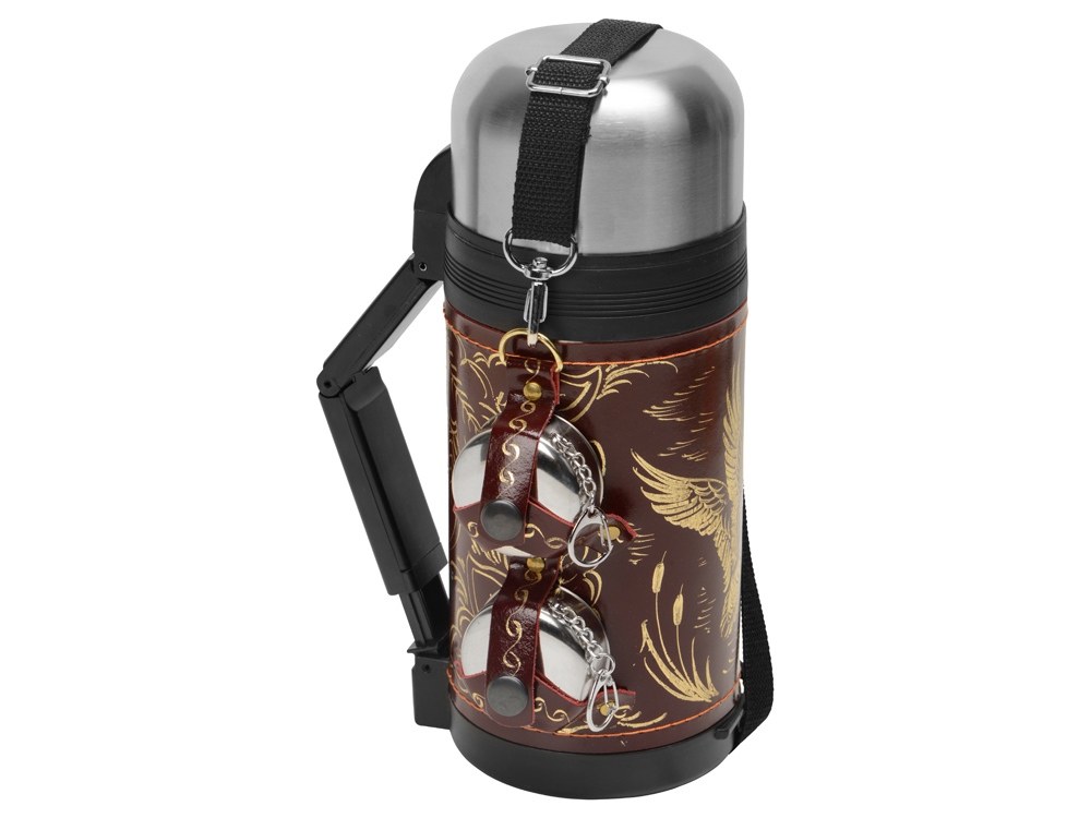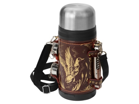 - Термос 1,2л (нерж.сталь) с металлической колбой в чехле из натуральной кожи с художественным выжиганием - 1 шт.
