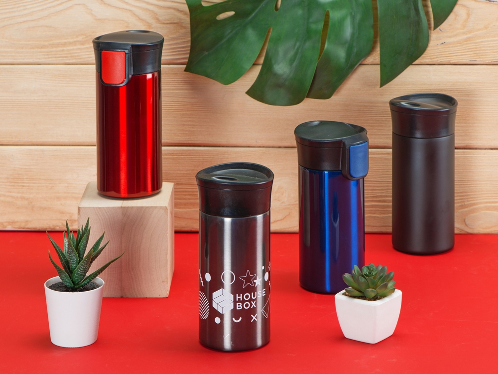 Термокружка из пищевой нержавеющей стали с функцией автоматической блокировки. Чтобы попить нажмите и удерживайте кнопку. Если кнопку отпустить – питьевое отверстие автоматически закроется. Благодаря продуманной конструкции крышка герметична, но при этом быстро и легко разбирается. Термокружку удобно использовать одной рукой. Подходит для горячих и холодных напитков. Объем 300мл.