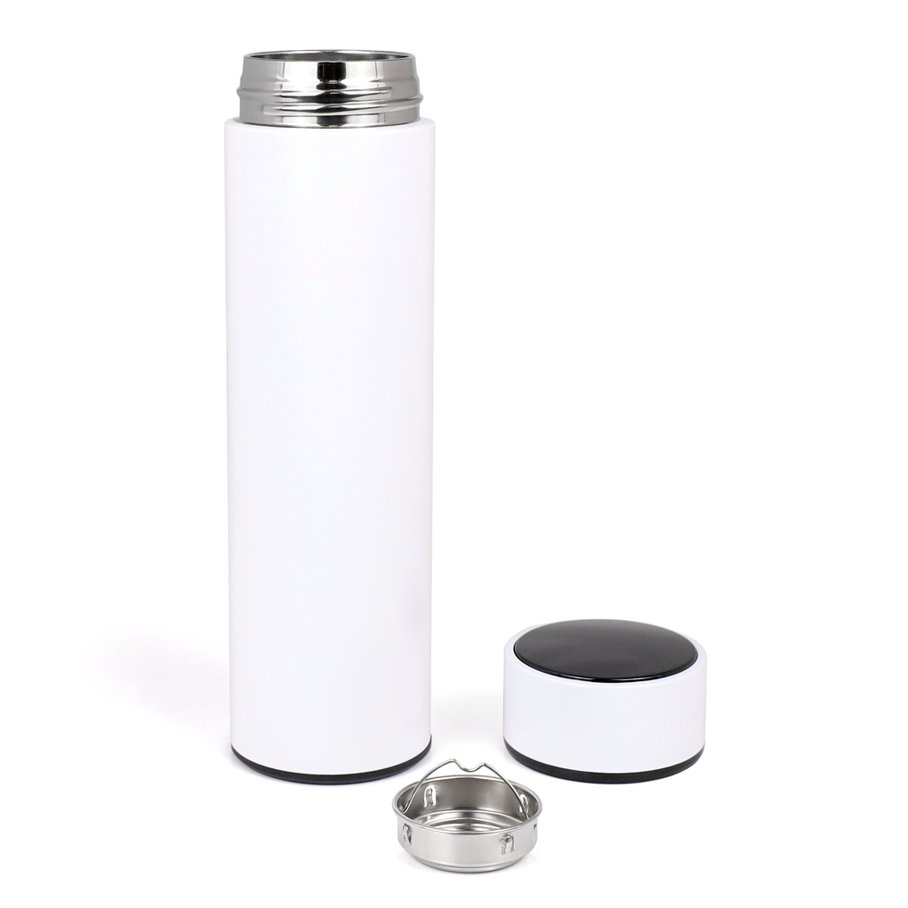 Нужный подарок с современными возможностями. Данный термос обладает сенсорным дисплеем для отображения температуры содержимого. Батарея рассчитана на 80000 касаний. Внутри встроено ситечко для чая и других напитков. Корпус обладает приятной на ощупь глянцевой поверхностью.