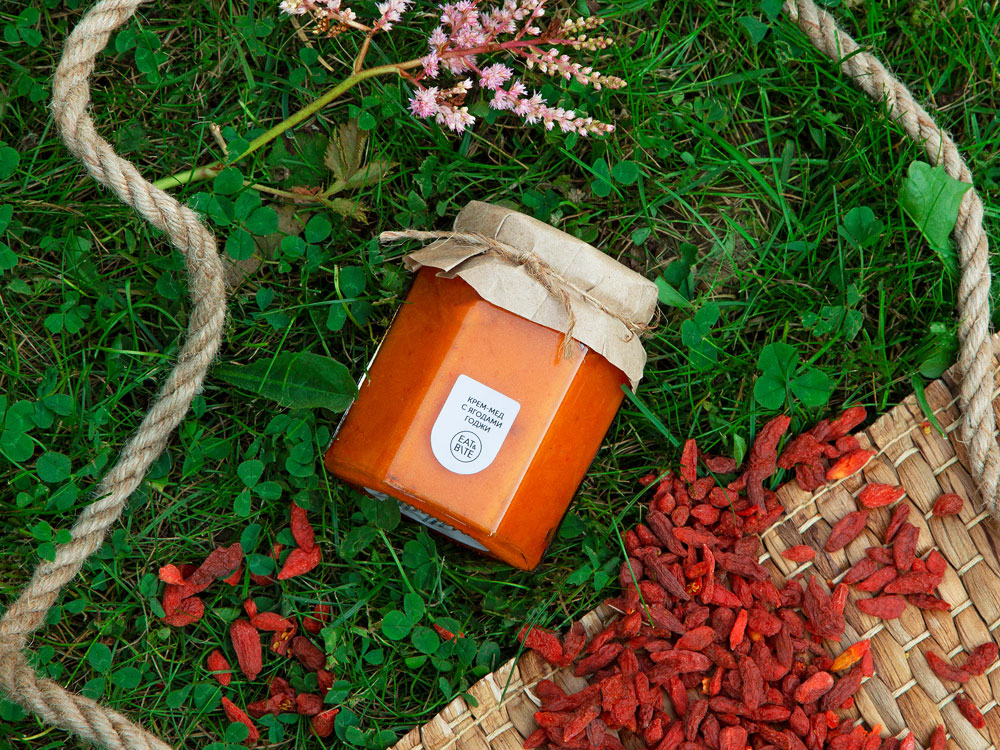 Крем-мёд это настоящий десерт для сладкоежек. Благодаря своей структуре он идеально подходит как топпинг, который легко намазать и не бояться, что он растечется по тарелке. Ягоды годжи добавляют к десерту отличный состав полезных минералов и витаминов.