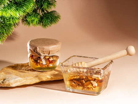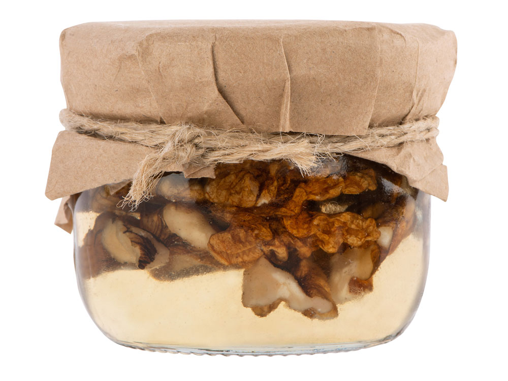 Мед и орехи прекрасно сочетаются друг с другом, образуя оригинальный и запоминающийся вкус. Медовый десерт идеально подойдет для чаепития, поэтому подобный подарок можно также дополнить чаем.