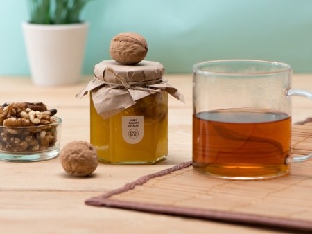 Мед и орехи прекрасно сочетаются друг с другом, образуя оригинальный и запоминающийся вкус. Медовый десерт идеально подойдет для чаепития, поэтому подобный подарок можно также дополнить чаем.