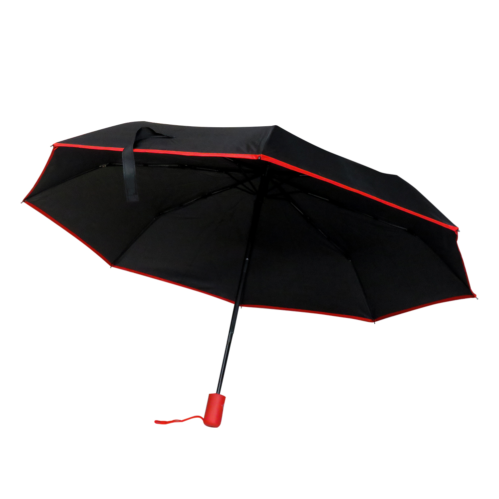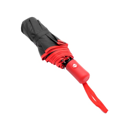 Спицы из стекловолокна, а специальное устройство препятствует поломке спиц при резких порывах ветра. Ручка софтач (цвет по PANTONE® максимально приближен 187C)  - в тон строчке по краю зонта.