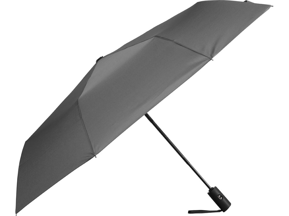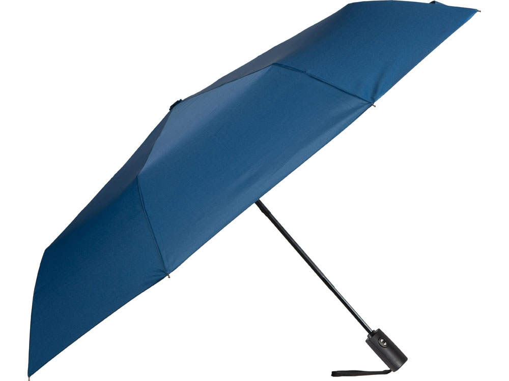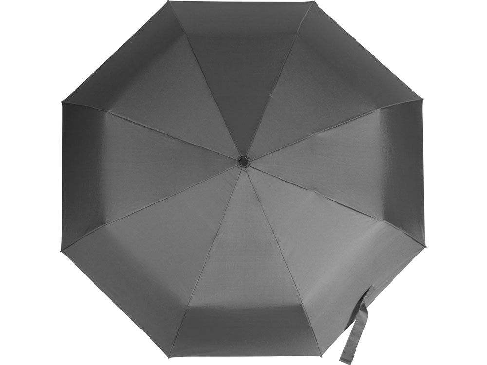 Купол зонта выполнен из переработанного пластика. Гибкие спицы из стекловолокна делают зонт стойким к порывам ветра. Удобная ручка софт тач. Фиксирующая купол застежка на липучке шириной 3 см - дополнительная опция для нанесения вашего логотипа.