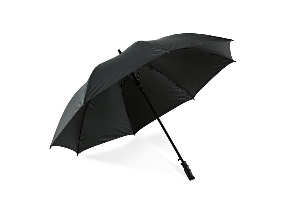 Зонт для гольфа из эпонжа плотностью 190Т, с тростью и прутьями из стекловолокна и ручкой из материала PP. Данный зонт снабжен системой защиты от ветра и автоматическим открытием. Зонт: ø1170 мм x 880 мм. Данный товар поставляется в чехле 9 x 75 мм