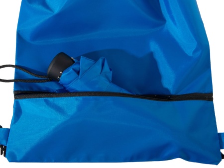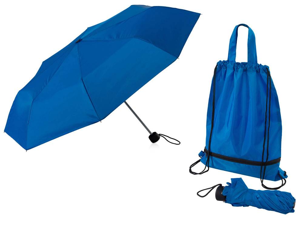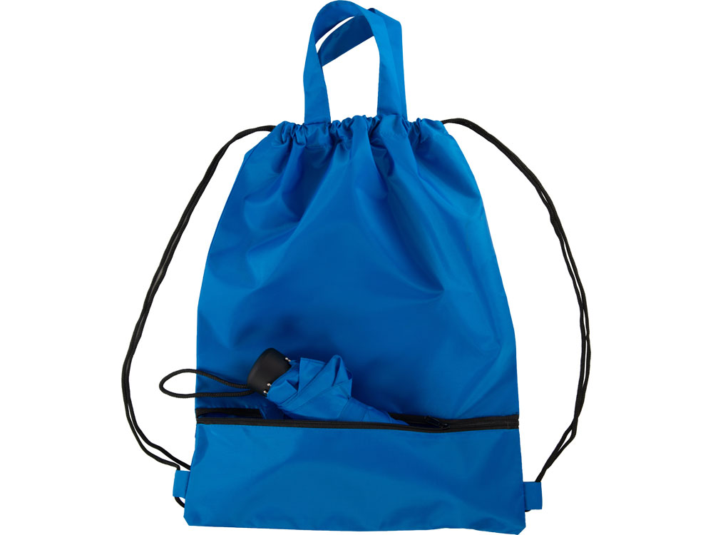 Механический зонт с прорезиненной ручкой идет в комплекте с сумочкой для покупок. На дне сумочки предусмотрен карман на молнии, в котором вы можете хранить зонт дома или прятать в него мокрый зонт, когда вы попали под дождь. Находясь в кармане сумочки, мокрый зонт не доставит неудобств. Сумочка имеет 2 варианта использования: шопер с двумя 2 ручками и рюкзак-мешок со шнурками.