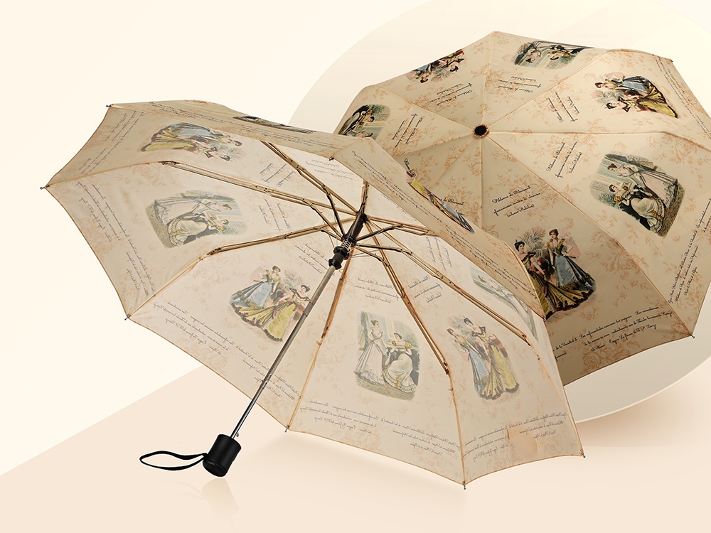 Оригинальный зонт оснащен полуавтоматическим механизмом. Купол зонта выполнен в нежных, приглушенных оттенках и задекорирован интересным принтом. Зонт удобно складывается в специальный чехол и хорошо защищает от дождя.