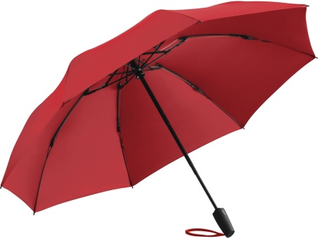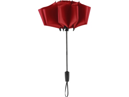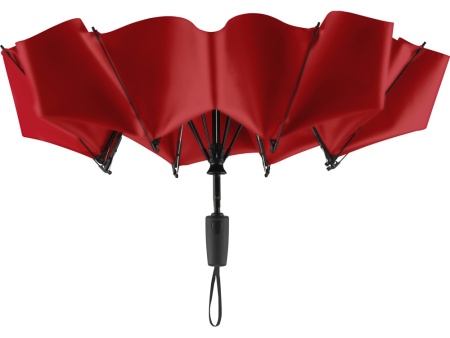 Современный зонт-полуавтомат с обратным сложением внутрь. Очень удобен в использовании, например, во время посадки в машину при складывании зонта вода остается внутри купола. Открывается с помощью кнопки на ручке из мягкого пластика.