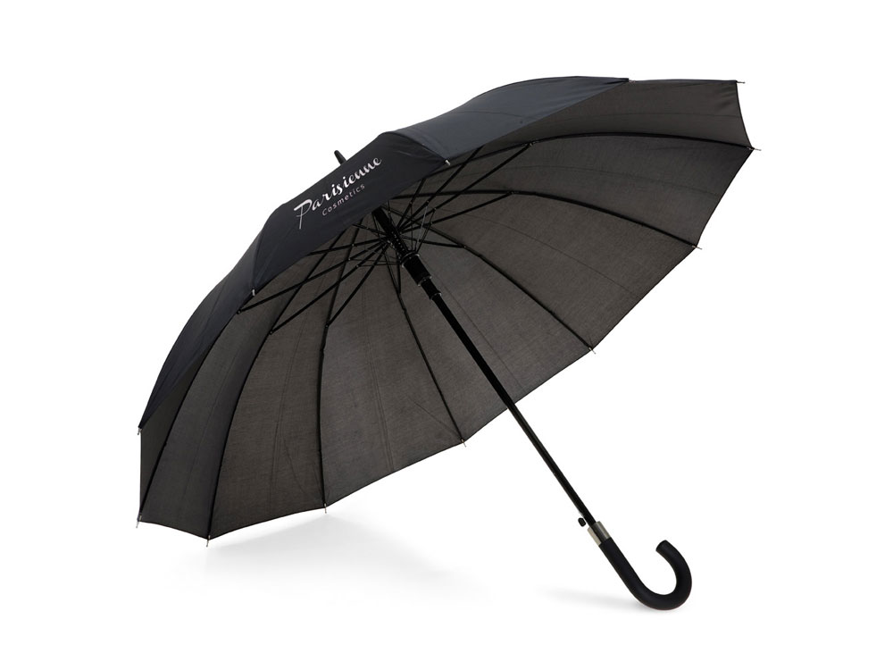 Полуавтоматический зонт-трость с 12-панельным куполом из полиэстера плотностью 190T и ручкой с прорезиненным покрытием.