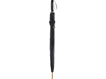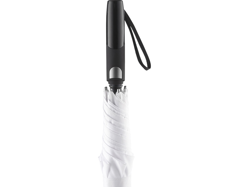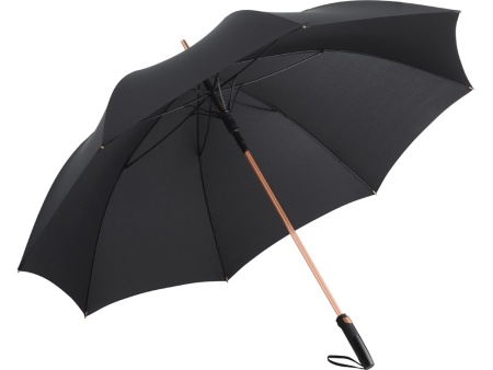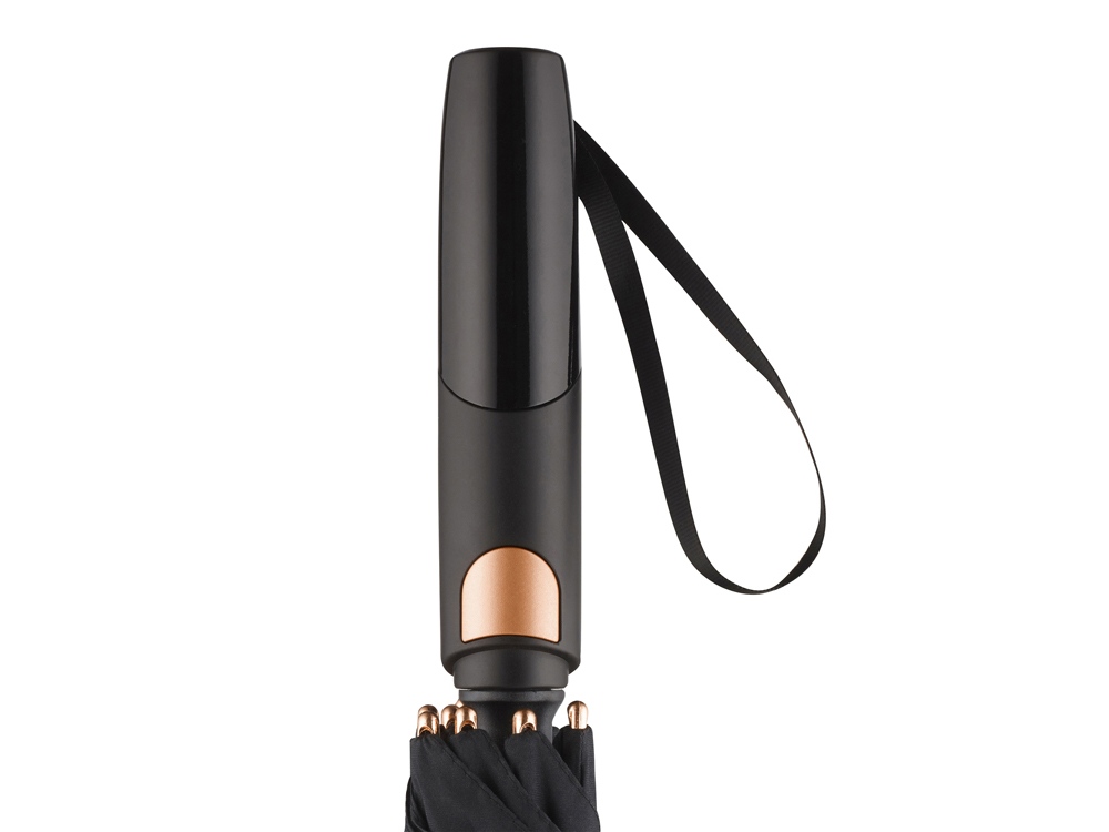 Зонт-трость с большим куполом укроет от дождя двух человек. Каркас изготовлен из особо прочного алюминия. Детали из алюминия окрашены в популярные цвета и стильно выглядят. Зонт плавно раскрывается нажатием кнопки на ручке. В ручку интегрирован эластичный шнур для большего удобства.