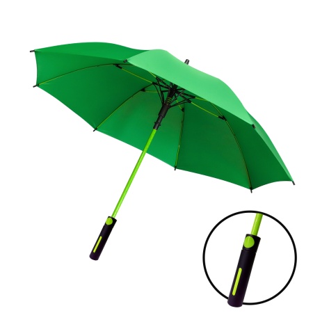 Базовая модель зонта, удобная и надежная. Автоматическое открытие, черная рама, ручка в цвет купола. Поставляется без чехла