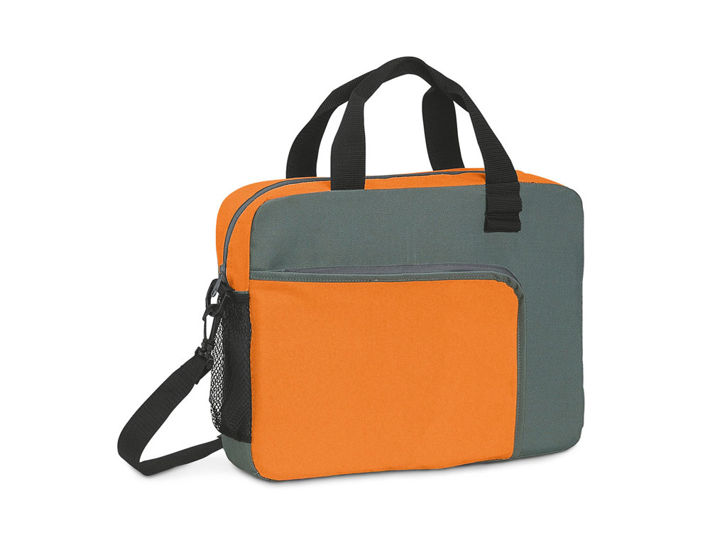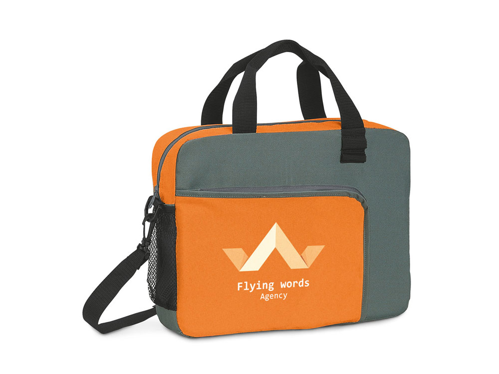 Многофункциональная сумка 600D с 2 боковыми сетчатыми карманами и передним карманом. В удлинение одной из ручек входят 2 ручки для ручек (не входят в комплект). Папка имеет регулируемый плечевой ремень из тесьмы. 390 x 300 x 80 мм. Вид нанесения, рекомендуемый поставщиком: трансфер.