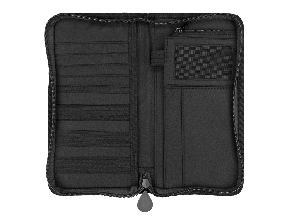 Портмоне для путешествий из прочного полиэстера сделает любую поездку более комфортной. Здесь предусмотрено место для паспорта, билетов и денег, кармашки для пластиковых карт, удобный держатель для ручки и фиксаторы на резинках для карточек или документов. Портмоне закрывается на молнию, а на его внешней стороне предусмотрен дополнительный карман для посадочного талона или других документов, которые приходится все время доставать. Портмоне Вест – прекрасный подарок для тех, кто любит путешествовать и проводит много времени в разъездах.