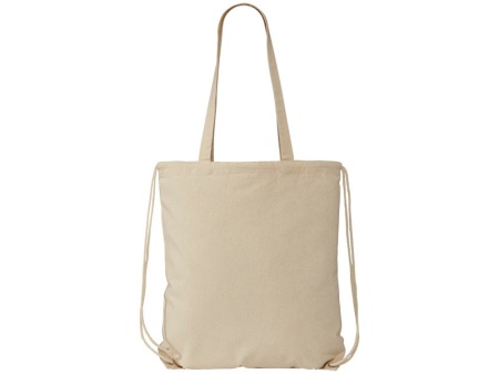 Многофункциональный хлопковый мешок с лямками и длинными ручками, который можно носить в качестве сумки для покупок или рюкзака. Большой основное отделение закрывается затяжкой- шнурком.