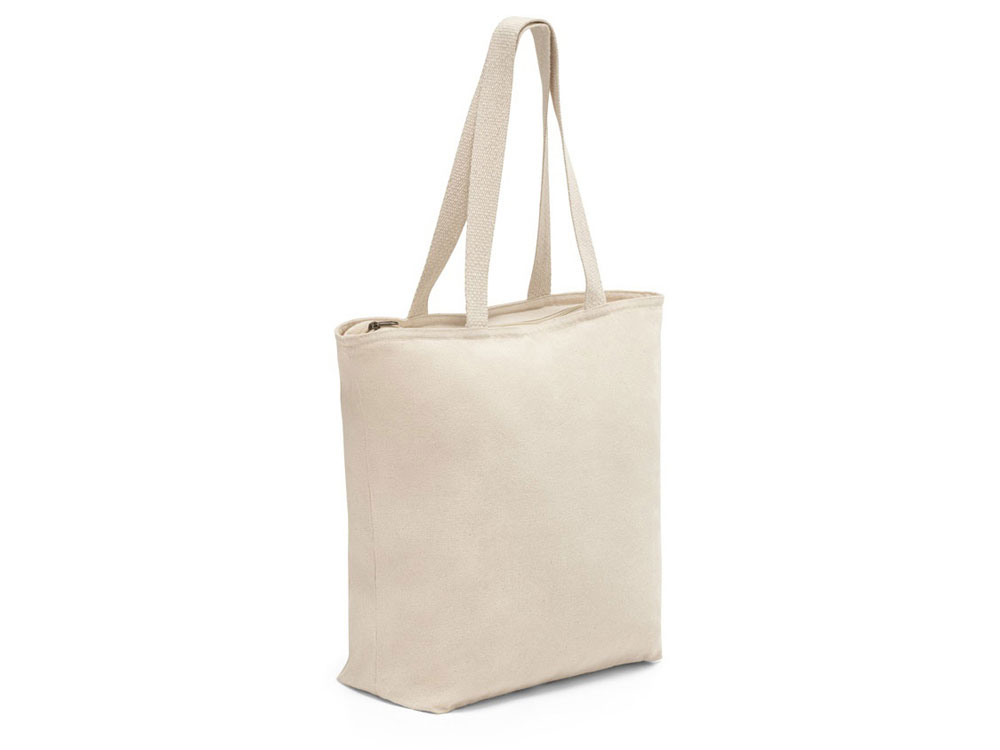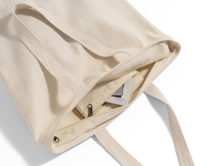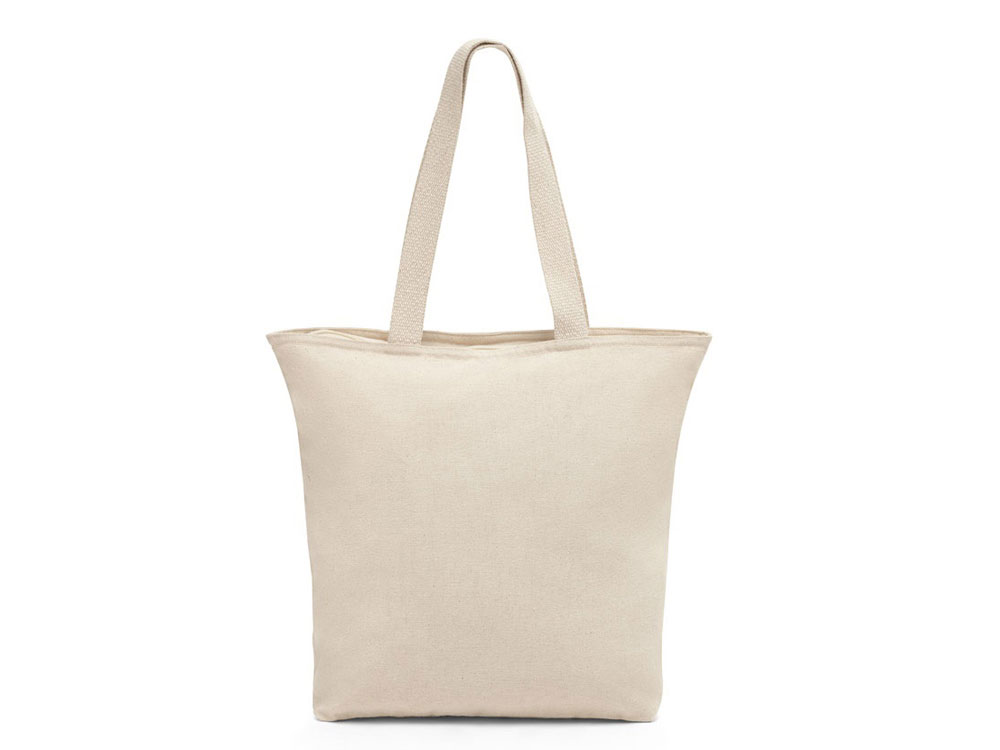 Сумка из 100% хлопка (280 г/м²) с молнией и внутренним карманом. Ручки из хлопковой тесьмы длиной 65 см. 480 х 480 х 150 мм, внутренний карман 180 х 140 мм