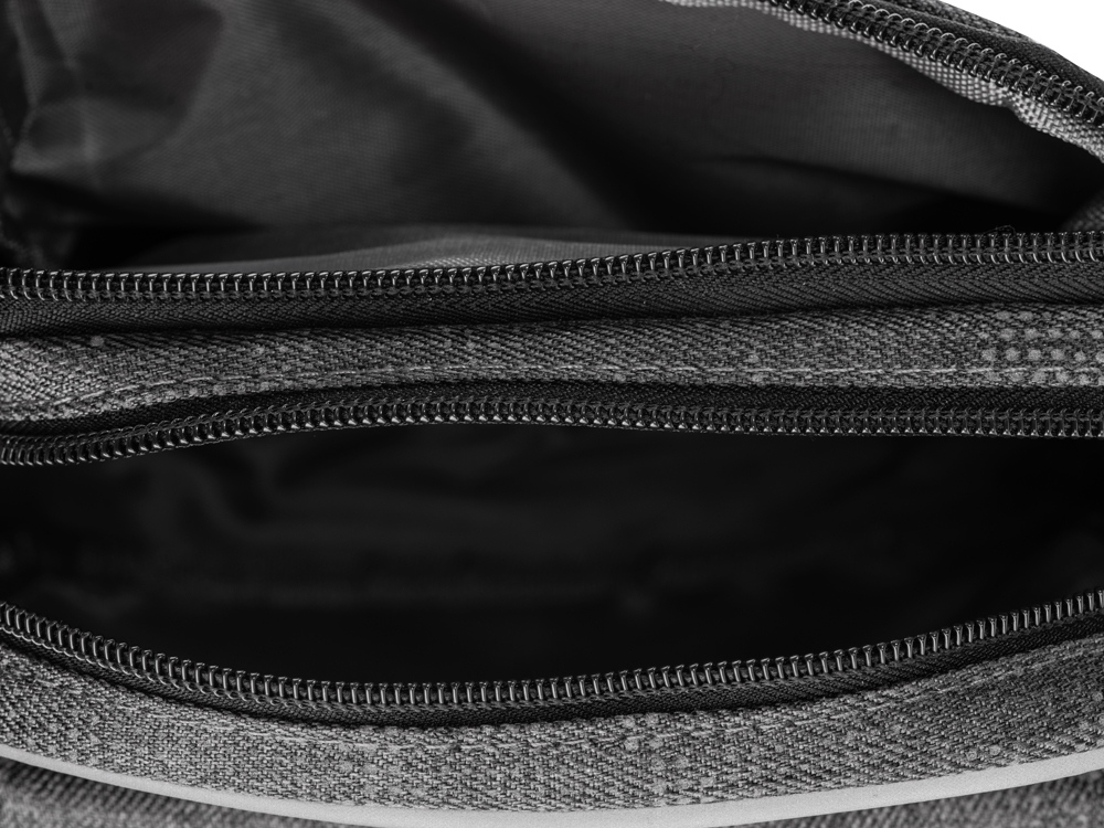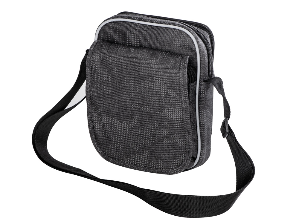 Материал сумки имеет светоотражающее камуфляжное нанесение. Спереди по краю сумки расположена светоотражающая полоса. Все это обеспечивает дополнительную безопасность в темное время суток.