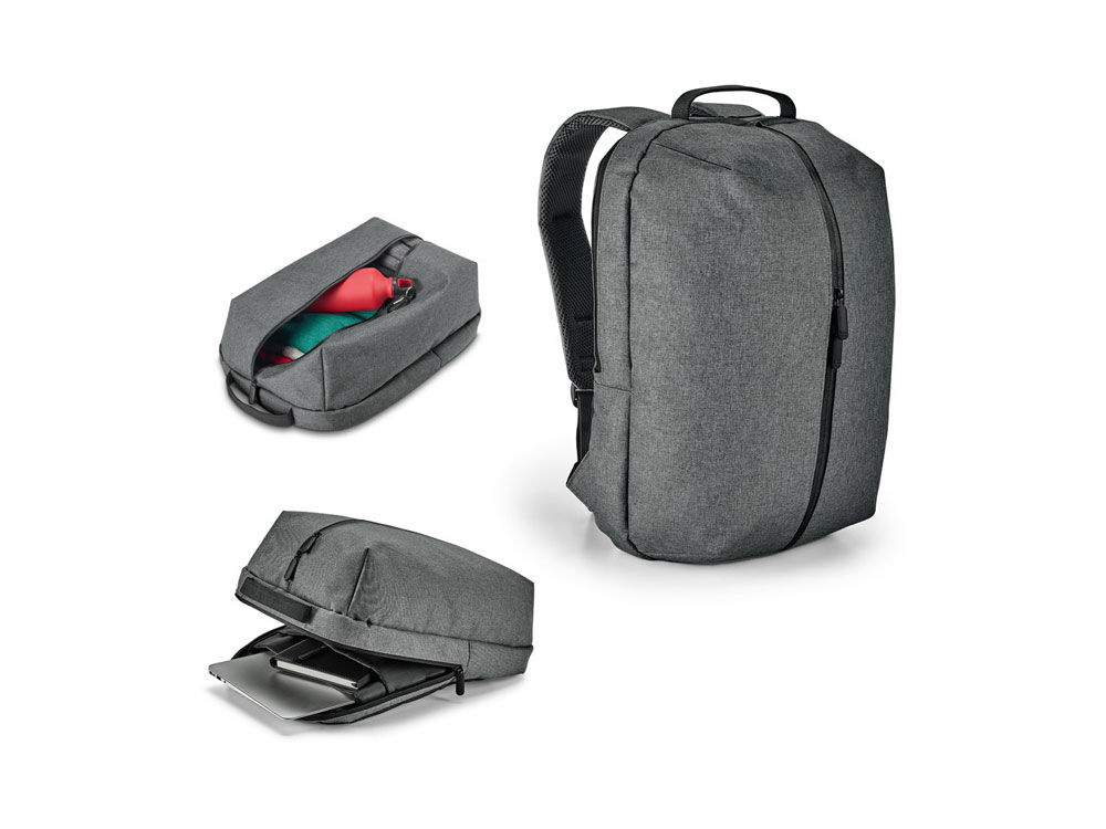 Рюкзак для ноутбука из 600D высокой плотности с 2 отделениями. Задняя часть с подкладкой, несколькими внутренними карманами и 2 мягкими отделениями для компьютера до 15'6'' и планшета до 10'5''. Переднее отделение с набивкой, идеально подходит для транспортировки одежды (или для отдыха). Задняя часть и шлейки с набивкой. В рюкзаке есть ремень для крепления к чемодану. 300 x 450 x 160 мм