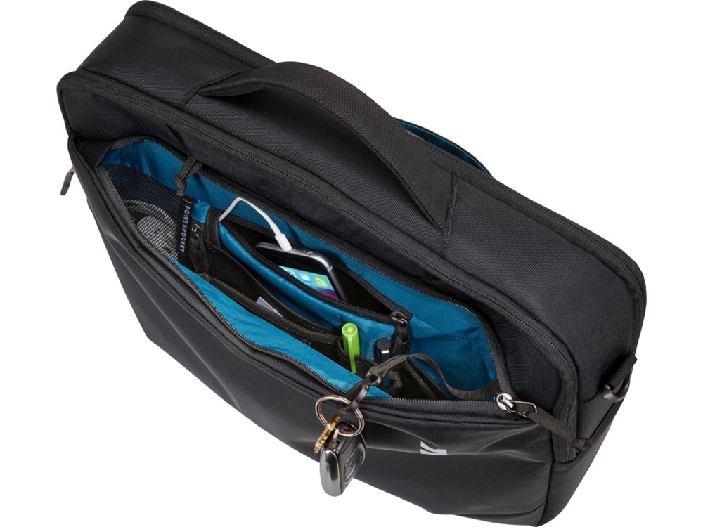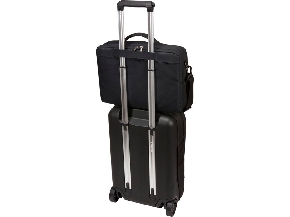 Сумка для ноутбука с главным отделением на молнии, мягким чехлом для ноутбука 15,6 и приспособленным для планшета 10 карманом. Поставляется со специальным внутренним отделением, в котором устройство можно держать отдельно от зарядных элементов, а также с мягким внутренним карманом для защиты телефона, солнцезащитных очков или других предметов и несколькими карманами во внутренней части, на передней и задней панелях. Имеет рукав для фиксации на выдвижной ручке дорожной сумки, заднюю панель с наполнением и съемный мягкий наплечный ремень. Водонепроницаемая.