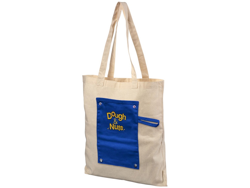 Хлопковая рулонная сумка-тоут на кнопках. Хлопковая рулонная сумка-тоут 180 г/м2 с открытым основным отделением и рулонной вставкой 220 г/м2 на кнопках. Эта сумка легко сворачивается и помещается в небольшом пространстве. Высота ручек 27 см. Хлопок.
