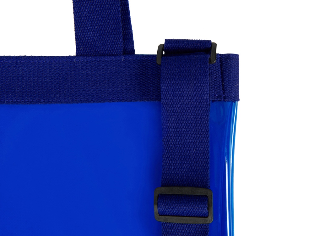 Легкая и вместительная сумка из прозрачного пластика с длинной лямкой из парусины, регулирующейcя по длине, незаменима для шоппинга или путешетсвий. Для большего удобства у сумки есть 2 короткие ручки.