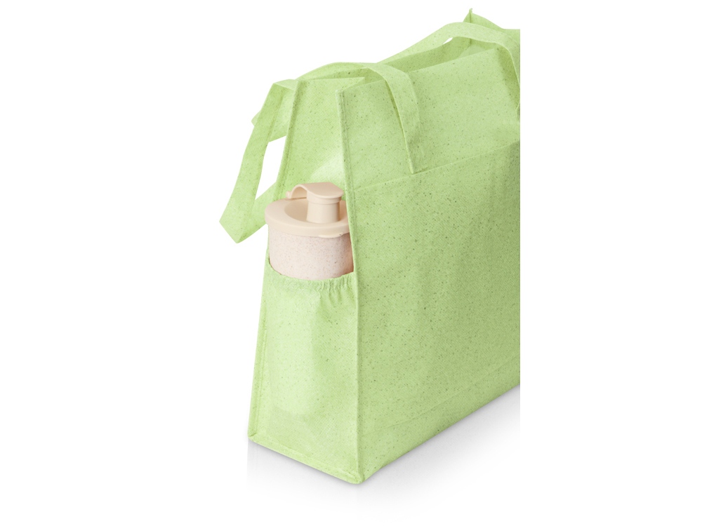 Легкая практичная и удобная сумка изготовлена из нетканого материала - 100% переработанного полипропилена. Благодаря широкому дну сумка обладает увеличенной вместительностью. Снаружи большой карман для мелочей. Сбоку с карман для бутылки.
