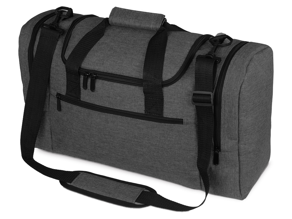Удобная и прочная сумка для путешествий или походов в спортзал. Два вместительных больших кармана на молниях по бокам и один спереди. Сумка сделана из плотной долговечной ткани. Ремень на плечо отстегивается и регулируется по длине.