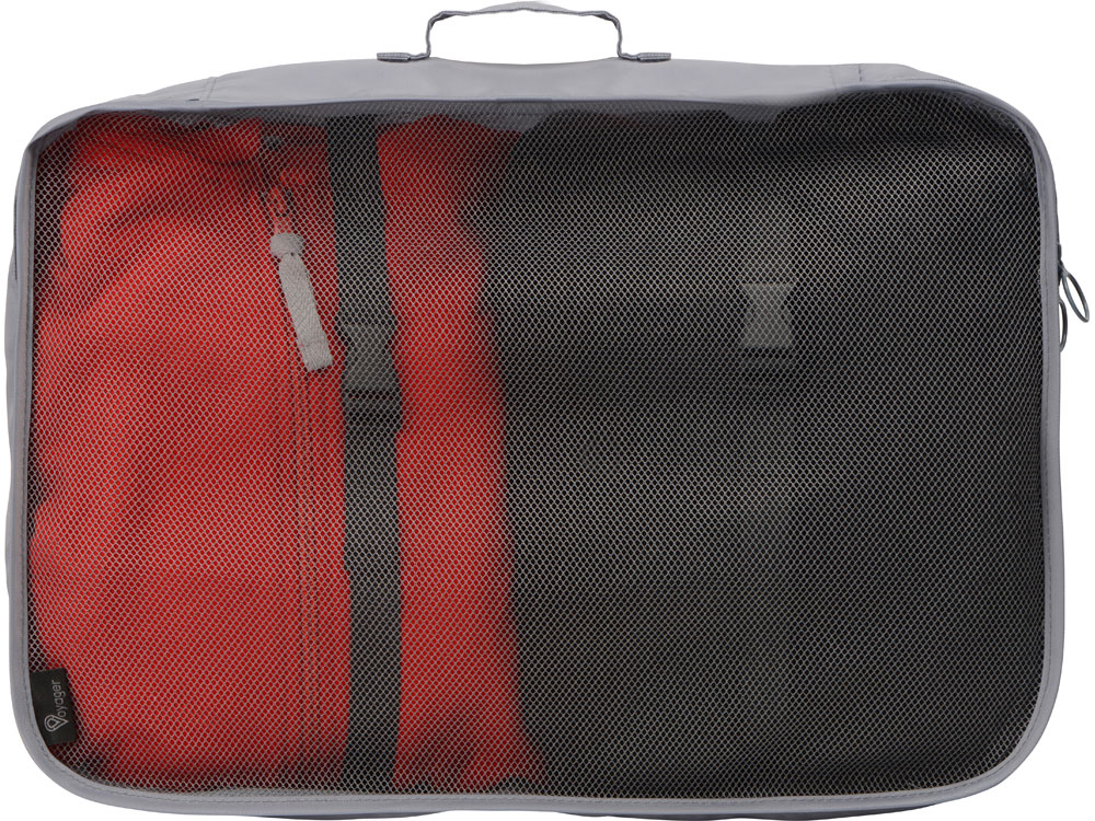 Набор чехлов для одежды от бренда Voyager, выполненный из прочного качественного полиэстера 290D, организует ваши вещи в чемодане во время путешествия и поможет разместить их комфортно в шкафу. В отличие от пакетов чехлы многоразовые, что наверняка понравится защитникам природы, их легко стирать, сушить и хранить. Набор состоит из восьми чехлов, упакованных в один большой с сетчатой стенкой. Этот чехол оборудован ручкой для переноски и кнопками на задней стенке, которые позволяют компактно сложить изделие вдвое в зафиксированном положении для хранения.