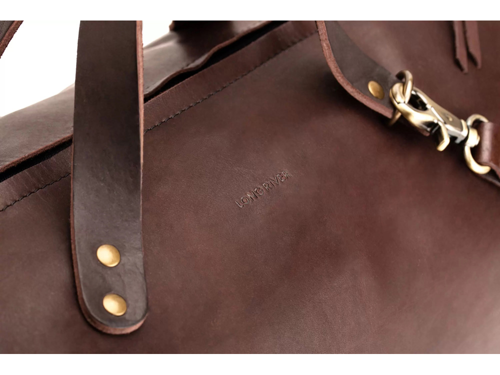 Сумка выполнена из прочной кожи, металлическая фурнитура не подвержена коррозии, способна выдерживать большой вес и тяготы отечественного климата.