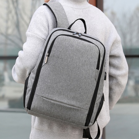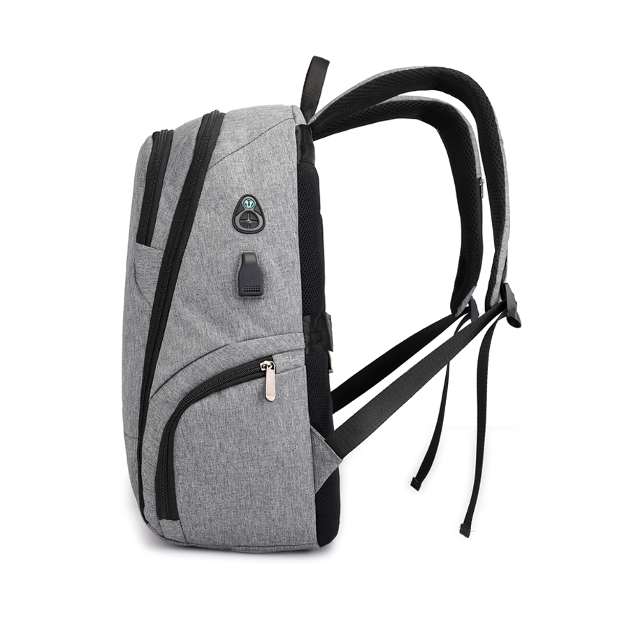 Сочетание прочных материалов и функциональности. Одно переднее отделение для мелочей. 2 боковых отделения на молнии, вместительное основное отделение имеет карман для ноутбука, 2 кармана для мелочей и 2 кармана для письменных принадлежностей. Снаружи есть USB-разъем с проводом внутри для подключения внешнего аккумулятора, а также отверстие для наушников. Ручка, спинка и лямки рюкзака с системой вентиляции, со стороны спины есть лямка для размещения рюкзака на ручке чемодана. На левой лямке есть карман на замке для пропуска/ проездного. На спинке рюкзака расположен большой скрытый карман.