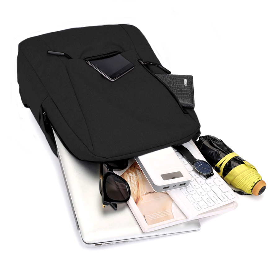 Office – удачная модель рюкзака для ежедневного использования. 2 передних кармана, один из которых скрыт, боковые карманы можно использовать для бутылки с водой, Вместительное основное отделение: внутренний карман для ноутбука на липучке, вместит в себя ноутбук размером 14 дюймов, 2 отделения для мелочей. Снаружи имеется USB-разъем с проводом внутри для подключения внешнего аккумулятора, широкие вентилируемые лямки.
