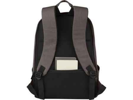 Изготовленный из высокопрочных экологичных материалов, брезента и подкладки из переработанного ПЭТ, соответствующих стандарту GRS, рюкзак с защитой от кражи Joey имеет специальный чехол для планшета и отделение с подкладкой для ноутбука диагональю 15,6 дюймов. Рюкзак также имеет сетчатый карман и внутренние отделения для организации вещей, 2 боковых кармана для воды, один передний карман на молнии и скрытый карман на спине для легкого и безопасного доступа на ходу. Декоративная металлическая пластина может придать логотипу сияние благодаря утонченному матовому покрытию.