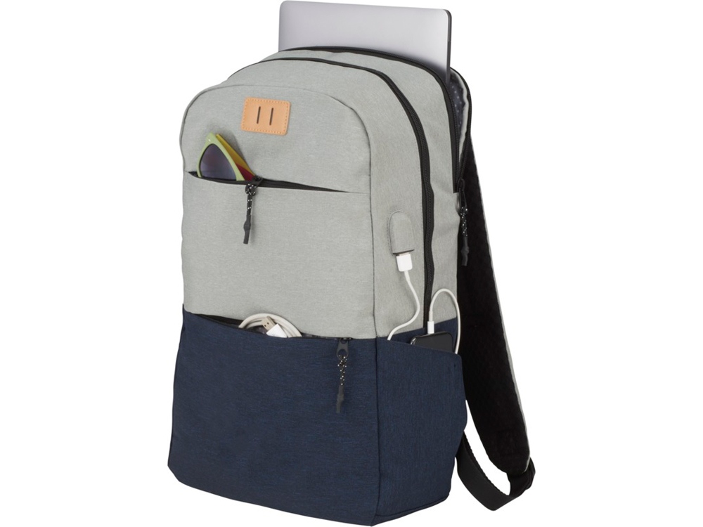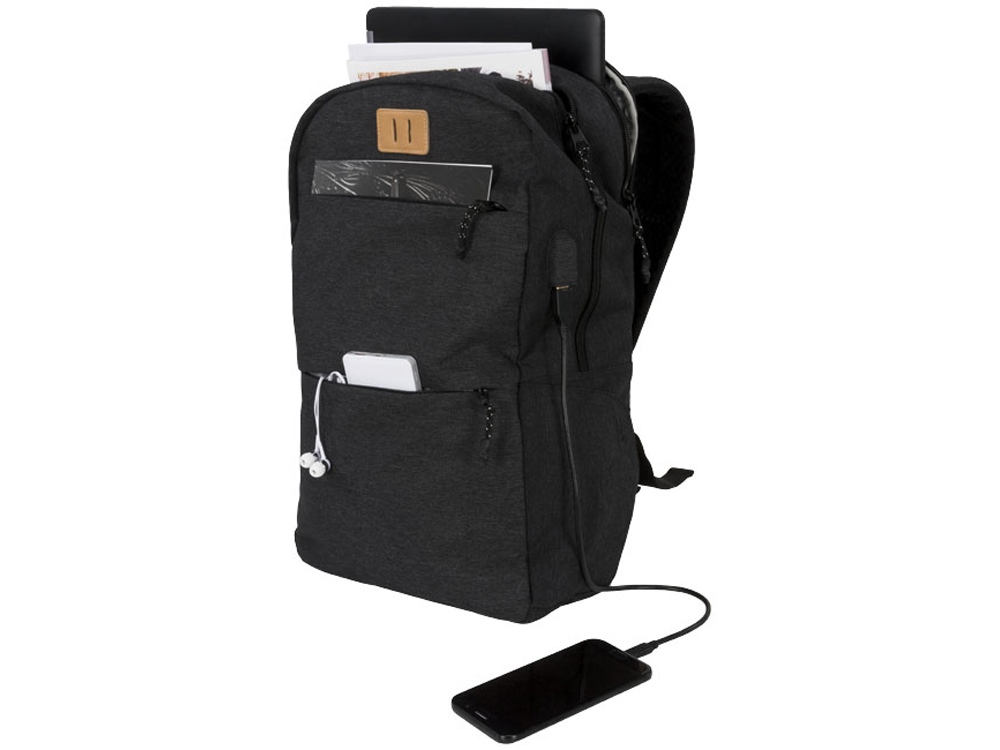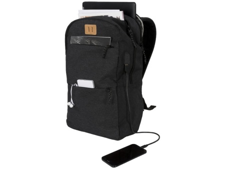 Рюкзак Cason для ноутбука 15. Оснащен открытым главным отделением с карманом для ноутбука 15, двумя передними отделениями на молнии, съемными бегунками застежки молнии и печатной строкой внутри. Поставляется с USB-портом и кабелем для удобной зарядки во время движения. Polycanvas 600D.