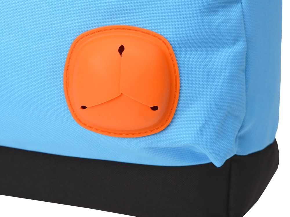 Легкий яркий рюкзак с уплотненной спинкой, наружным вместительным карманом, отверстием для наушников и регулируемыми по длине лямками.