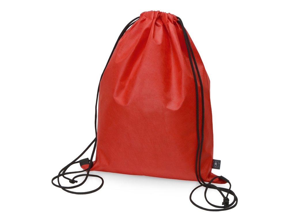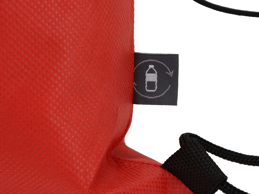 Рюкзак-мешок изготовлен из переработанного пластика. Затягивается с помощью двух боковых шнурков.
