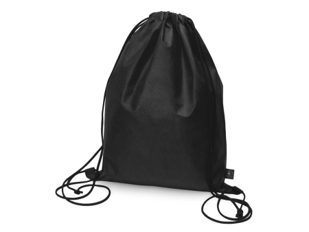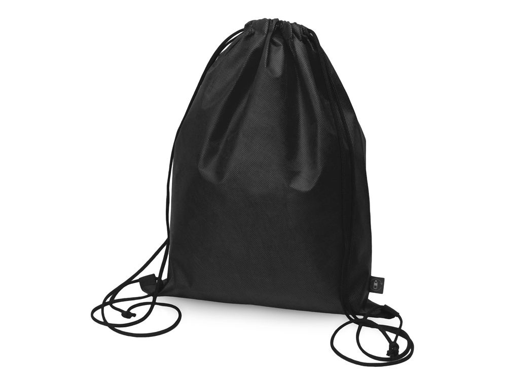 Рюкзак-мешок изготовлен из переработанного пластика. Затягивается с помощью двух боковых шнурков.