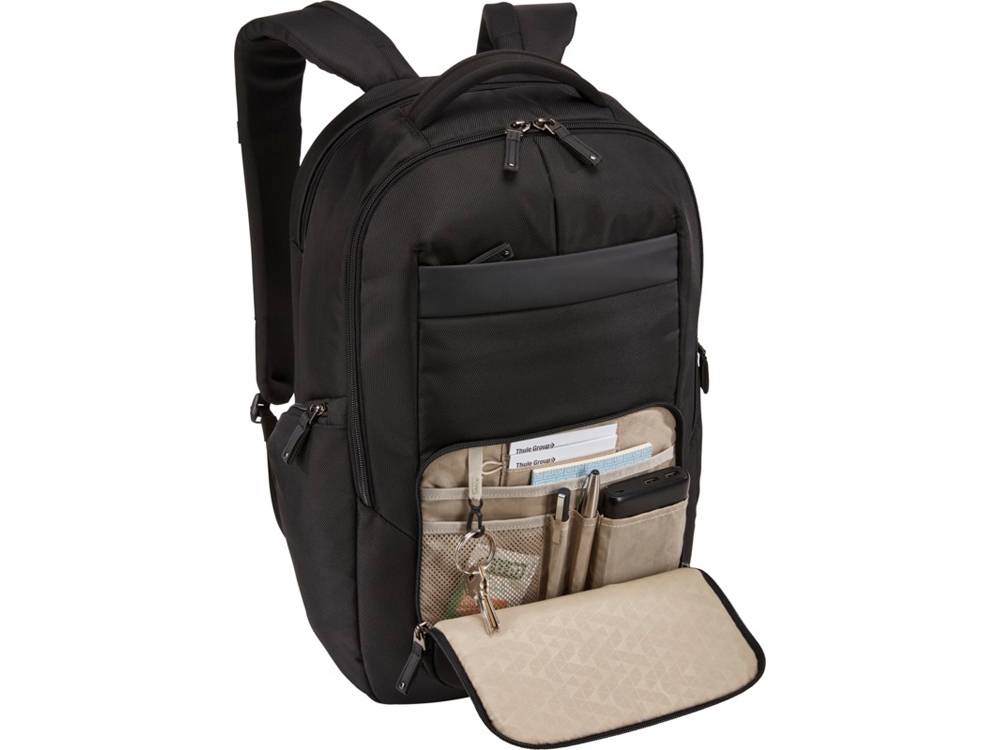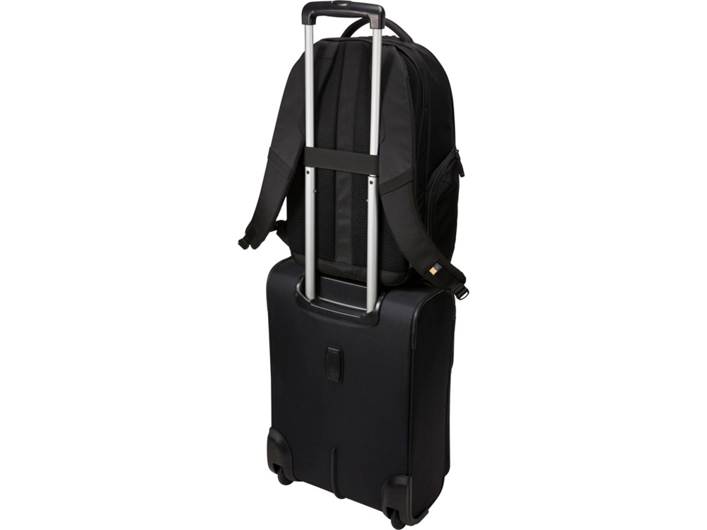Имеет большое основное отделение на молнии с мягким чехлом для ноутбука 15,6 и планшета 10,1 и сетчатый карман на молнии для кабелей и аксессуаров. Поставляется с передней панелью-органайзером для хранения небольших электронных приборов, кабелей, аксессуаров, визитных карточек и ключей. Имеет расширяемые боковые карманы под бутылку с водой или блок питания, мягкие наплечные ремни, стеганую заднюю панель из сетки, мягкую ручку и рукав для фиксации на выдвижной ручке дорожной сумки. Гарантия от Case Logic: 25 лет.