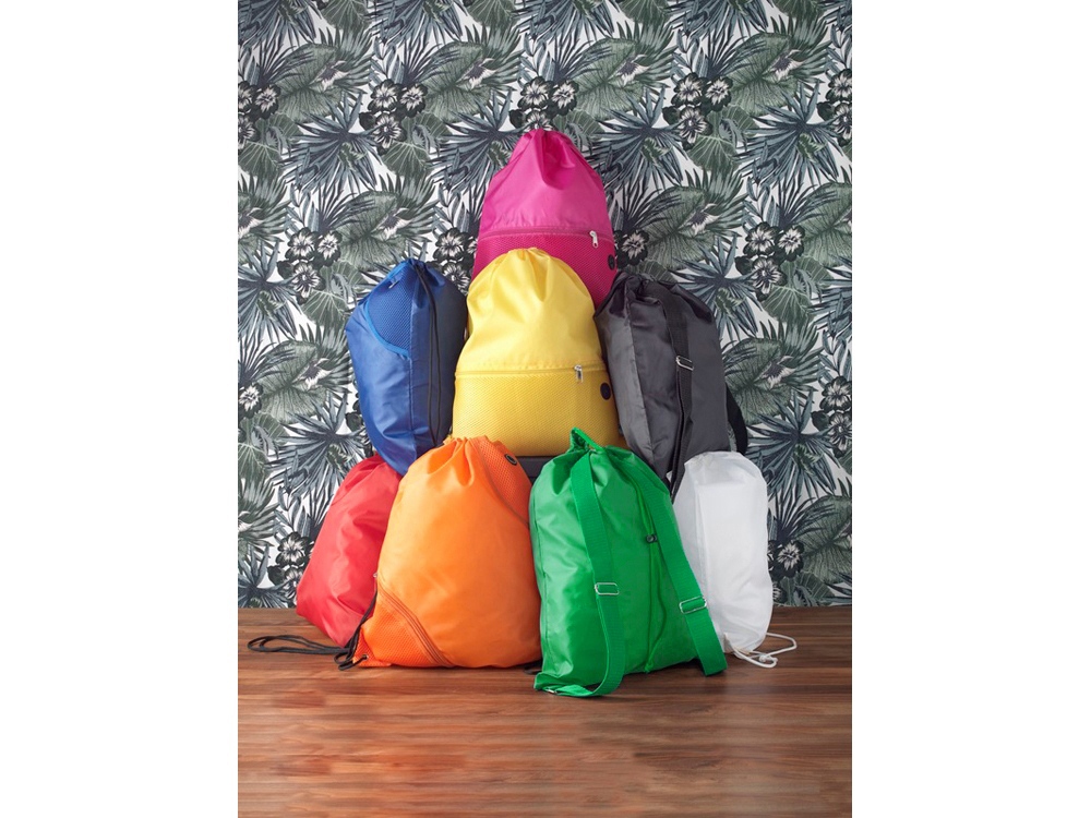 Рюкзак со шнурком и главным отделением на шнуровке в цвет изделия. Имеет большие регулируемые наплечные ремни. Прочность до 5 кг.