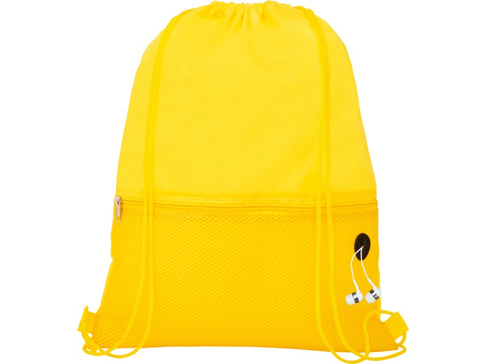 Рюкзак со шнурком и главным отделением на шнуровке в цвет изделия. Имеет один передний сетчатый карман на молнии и порт для наушников. Прочность до 5 кг.