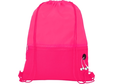 Рюкзак со шнурком и главным отделением на шнуровке в цвет изделия. Имеет один передний сетчатый карман на молнии и порт для наушников. Прочность до 5 кг.