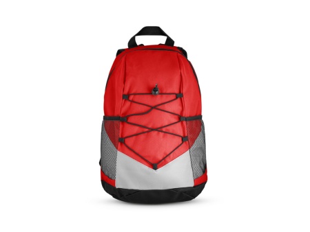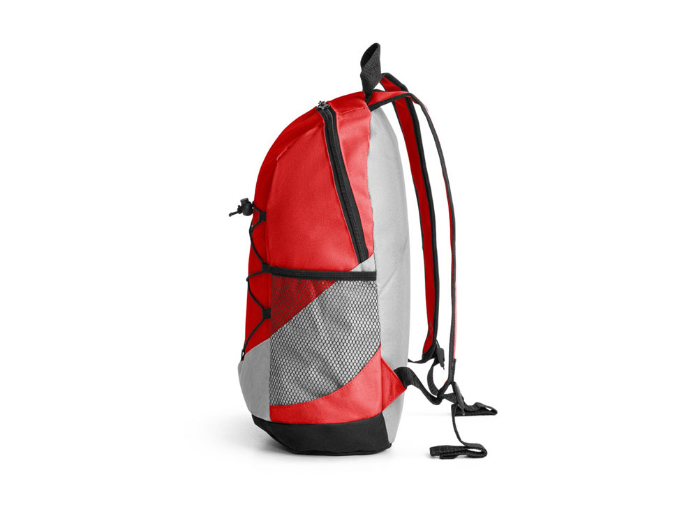 Рюкзак из 600D с боковыми карманами из сетки и одним внутренним. Задняя часть и плечевые ручки с набивкой. 250 x 420 x 180 мм