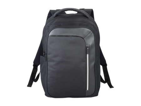 Рюкзак Vault для ноутбука 15.6 с защитой RFID. Изящный, современный рюкзак для ноутбука 15,6 с большим передним карманом на молнии с карабином для ключей, и скрытым карманом с защитой RFID, чтобы защитить ваши карточки и паспорт от кражи личных данных. Большое основное отделение вмещает ноутбук 15,6 и специальный карман для IPad или планшета. Плотная спинка. Передняя вертикальная молния разработана, чтобы дать вам быстрый доступ к переднему карману. 2 дополнительных боковых кармана для большего места, регулируемые, мягкие ремни рюкзака позволят прикрепить к ним дополнительные аксессуары. Ручка вверху и стропа для крепления к чемодану. 600D полиэстер с акцентами из ПУ винила.