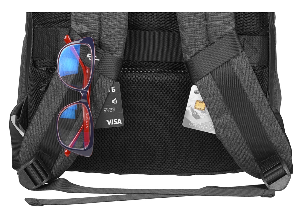 молния основного отделения смещена вплотную к спине, что осложняет несанкционированный доступ к содержимому