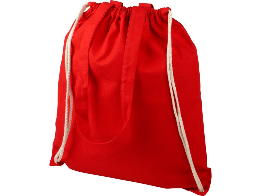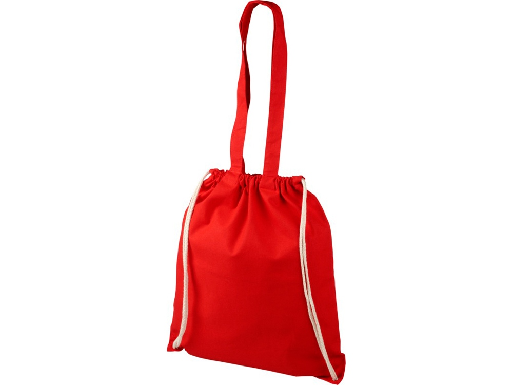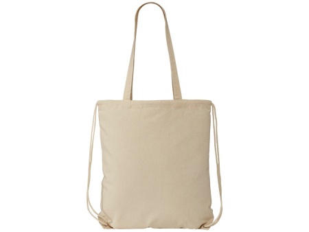 Многофункциональный хлопчатобумажный мешок с длинными ручками и затягивающим шнурком, который можно носить в качестве сумки для покупок или рюкзака. Большой основной отсек, закрывающийся затяжкой шнурка. Имеет две выпадающие ручки длиной 31 см. Вместимость: 16 л, выдерживает до 5 кг веса. Хлопок, 240 g/m2.