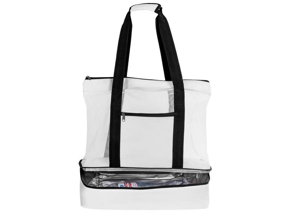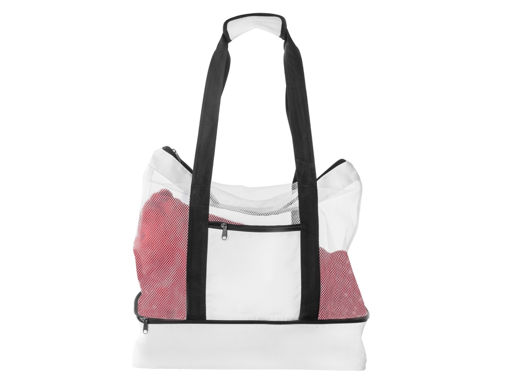 Вместительная пляжная сумка с отделением -холодильником внизу. Удобно брать холодные напитки на пляж. Сетчатая ткань способствует просыханию пляжных вещей. Комфортные длинные ручки фиксируются вместе застежкой липучкой. Все отделения и наружный карман для мелочей застегиваются на молнию. Благодаря большой вместительности сумку можно использовать для шоппинга.