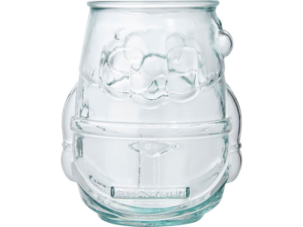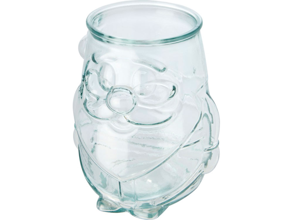 Подставка для чайной свечи из переработанного стекла в форме Санта-Клауса. Для создания этой подставки была использована 1 стеклянная переработанная бутылка. Переработанное стекло не отличается ничем по качеству от обычного, но при этом является более экологичным, ведь на изготовление этого материала тратится меньше энергии, сырья и примесей. Чайная свеча не входит в комплект.