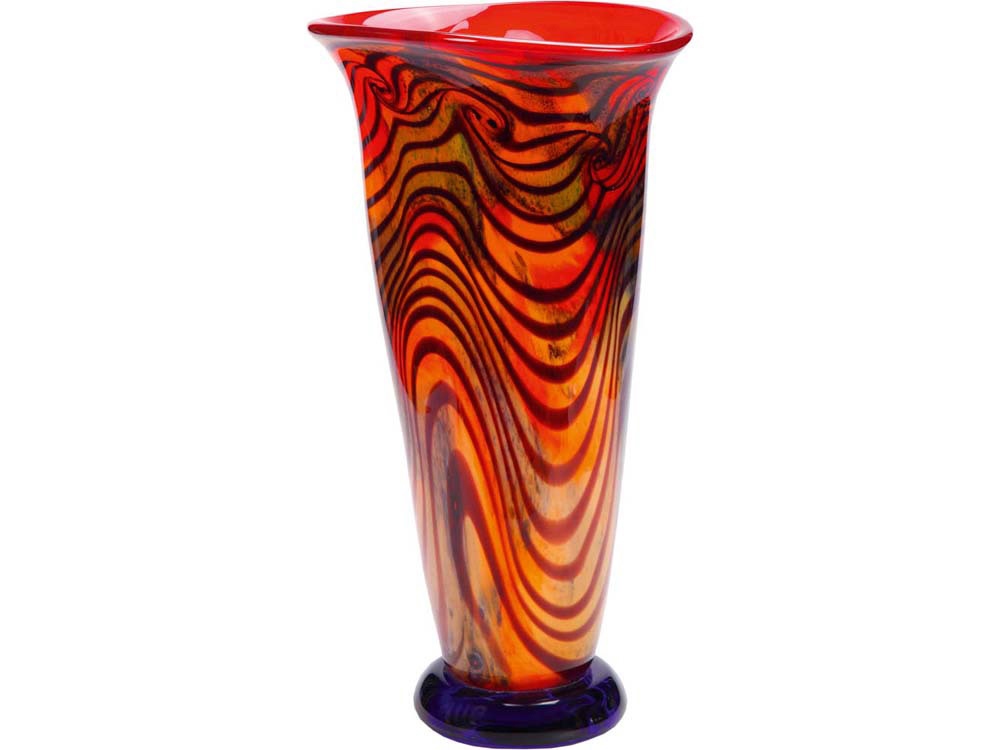 Яркая, необычная ваза с интересной формой выполнена из муранового стекла высшего качества. Плавные изгибы формы вазы дублируются темными линиями на ярком фоне. Ваза станет оригинальным украшением любого интерьера.