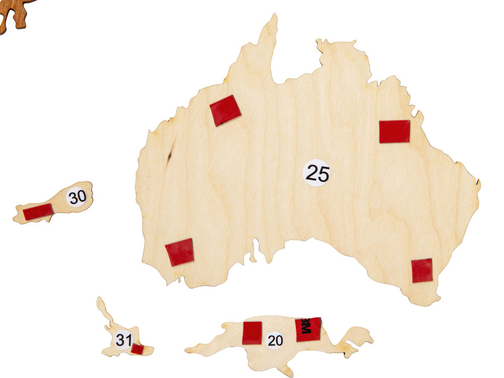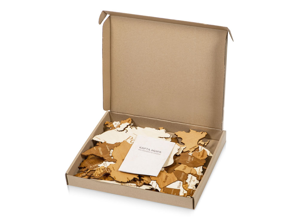 Настенная сборная карта мира из березовой фанеры — прекрасное украшение как офиса, так и квартиры. Карта крепится на стену при помощи двустороннего скотча, который уже прикреплен с тыльной стороны каждого элемента. А еще можно оживить карту корабликами и самолетами, которые тоже идут в комплекте, устремив их к тем странам, куда вы бы хотели полететь.