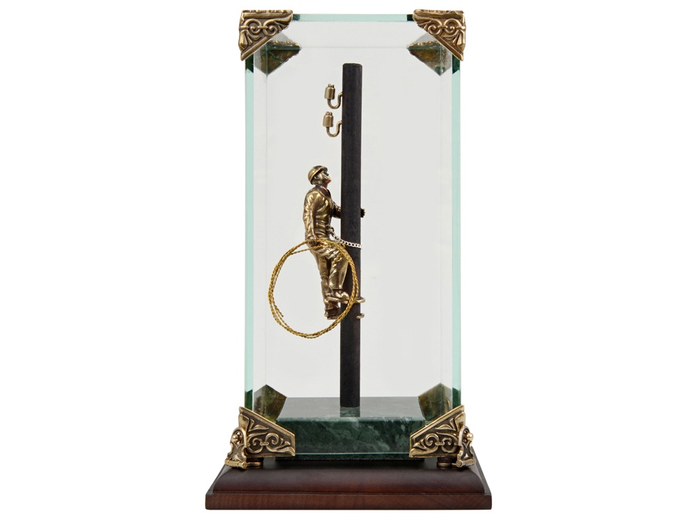 Подарочная композиция со статуэткой электрика, взбирающегося на электрический столб в полном обмундировании.