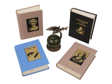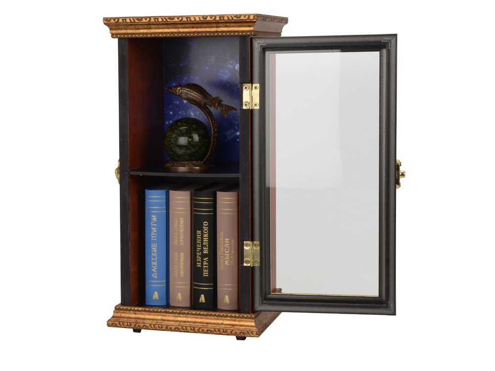 Подарочный набор в виде шкафчика с книжками карманного формата и интерьерной статуэткой, изображающей утонченных Рыб. Шкафчик представляет собой элегантную миниатюру реального предмета мебели. Его внутренний декор продолжает зодиакальную тематику. Изящная статуэтка послужит отличным украшением интерьера. Книжки из набора имеют удобный для чтения формат и презентабельное оформление переплета с элементами золотого тиснения. Неиссякаемым источником мудрости на каждый день послужат такие произведения из набора: