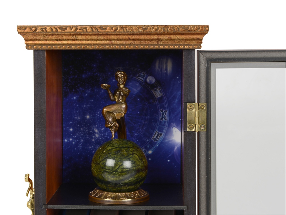 Подарочный набор в виде шкафчика с книжками карманного формата и интерьерной статуэткой, изображающей миролюбивых Весов. Шкафчик представляет собой элегантную миниатюру реального предмета мебели. Его внутренний декор продолжает зодиакальную тематику. Изящная статуэтка послужит отличным украшением интерьера. Книжки из набора имеют удобный для чтения формат и презентабельное оформление переплета с элементами золотого тиснения. Неиссякаемым источником мудрости на каждый день послужат такие произведения из набора: